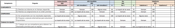 3. Una vez obtenemos el resultado por cada rol/evaluador sacamos el ponderado