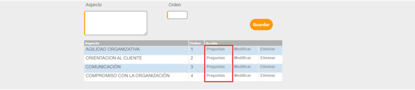 - Haz clic en el enlace Preguntas del aspecto correspondiente