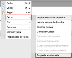 3. Cuando traes una tabla desde word para que el ancho de las celdas no se modifiquen, señala/marca toda la tabla, luego haz clic derecho y selecciona Celda + Propiedades de la celda