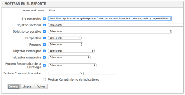1. Una vez seleccionado el reporte R1  selecciona la información de los filtros para refinar la búsqueda, luego haz clic en Generar
