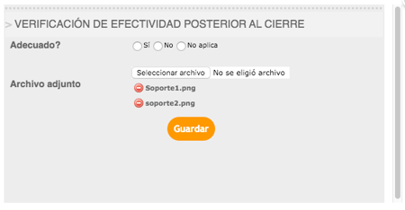 En la imagen de ejemplo se parametrizó que solo se verifique la variable Adecuado. - Si lo requieres puedes adjuntar uno o varios archivos de soporte, para eliminarlos haz clic en el icono