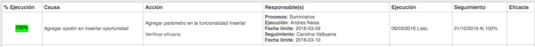 - La acción pasa automáticamente a la grilla de acciones abiertas para que se le definan nuevos planes de acción