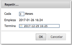 ❗Si la capacitación fue en una fecha anterior, es decir, que ya pasó el software te permite ingresarla y marcar la asistencia que tuvo cuando se realizó. - Si esta capacitación es periódica haz clic en el cuadro Repetir y te mostrará un cuadro para que selecciones cada cuantos meses se va a repetir y cuando termina así: