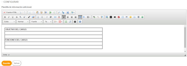 En el editor de texto puedes crear una plantilla con la información adicional de los perfiles de cargo.