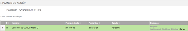 1. cuando se encuentren ejecutadas las actividades y subactividades, para esto ve a la grilla de planes de acción y haz clic en el link Cerrar, debes contar con permiso para esto