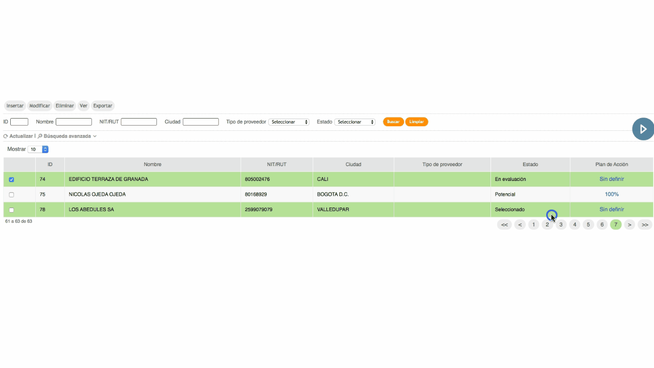 - Ubica en la grilla de datos el proveedor