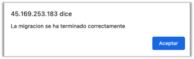 Terminado el proceso vas a ver un mensaje de confirmación, que la migración se ha realizado correctamente.