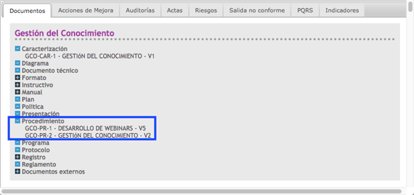 - Los prefijos con los cuales puedes armar la codificación de la documentación son los de: Procesos, Centros de trabajo o sedes y Tipo de documento, adicional puedes agregar un consecutivo para que así identifiques cuantos procedimiento, manuales, instructivos, entre otros, tienes en un proceso y adicionar guiones en medio de estos. Esto se verá así en el mapa de procesos👇