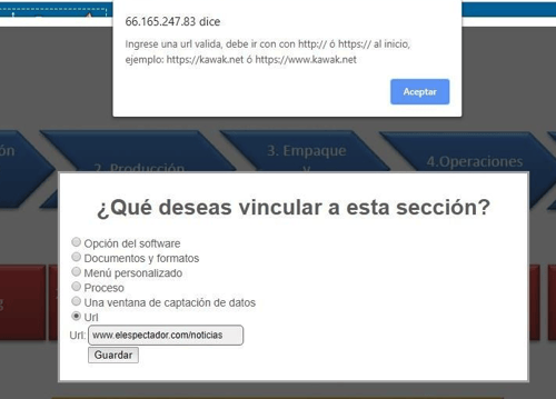 Cuando el usuario da clic sobre la zona le abre una ventana con la información del proceso como la que se ve cuando se hace clic en el mapa de procesos.