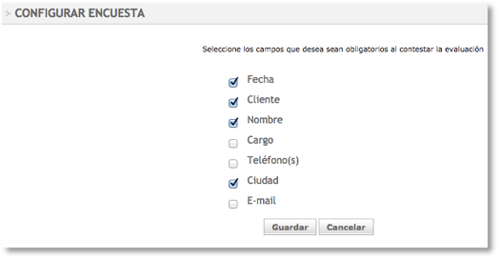 Estas son las opciones mínimas que necesitas parametrizar para que puedas iniciar a usar Encuestas: