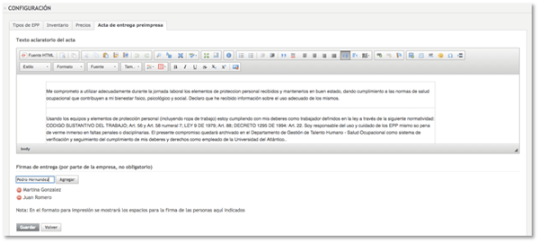 2. Configura el acta de entrega de EPP pre-impresa