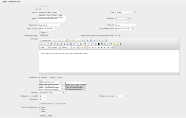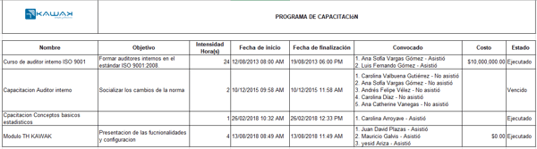 - Registra la asistencia de los colaboradores a las capacitaciones