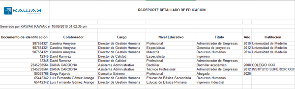 7. Genera reportes con información de las hojas de vida de tus colaboradores