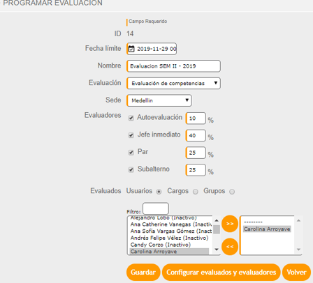 - Programa y activa las evaluaciones de competencias a los evaluadores