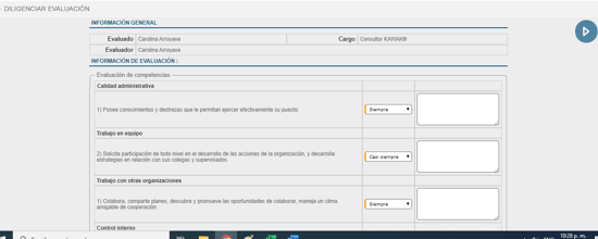 - Diligencia la evaluación de competencias que te programaron