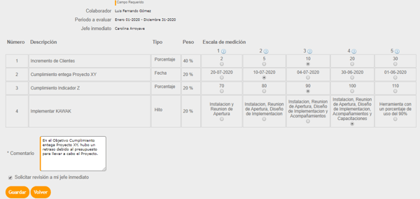 - Aprueba la calificación dada por tus colaboradores a la evaluación de resultados