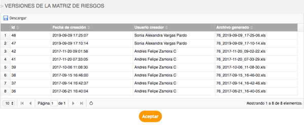 Al igual que en la matriz de riesgos, es importante versionar el informe de planes de tratamiento con el fin de evidenciar la gestión del riesgo que se realiza en diferentes periodos de corte.