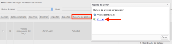 • Exportar: Genera un archivo Excel con el contenido de la matriz o con los elementos filtrados previamente