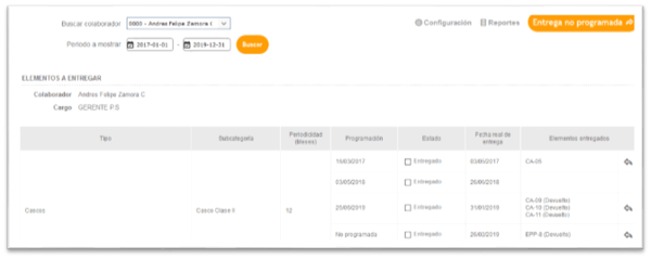 Realiza la devolución de EPP por colaborador